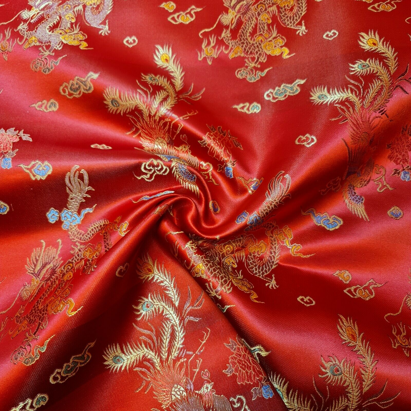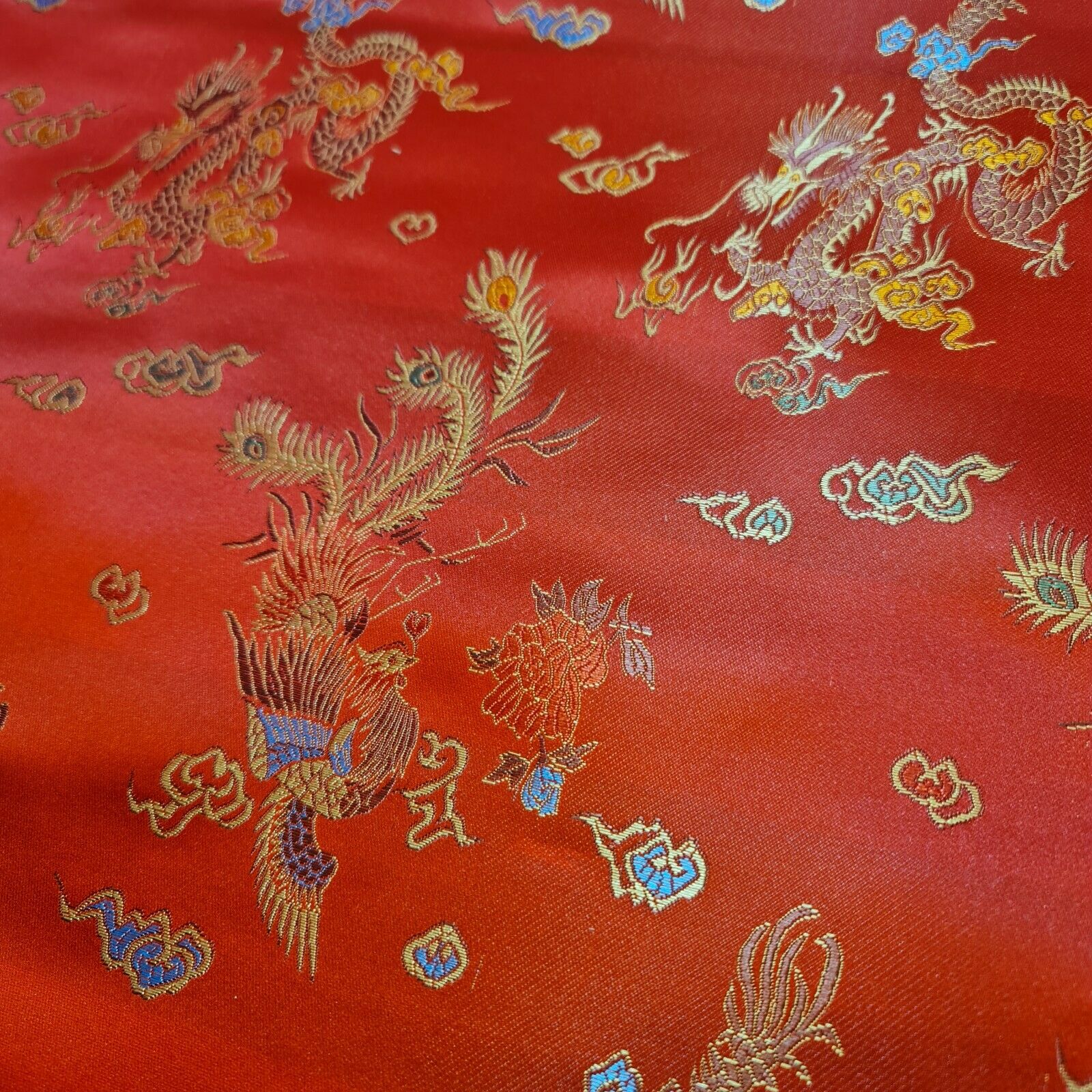 Chinese Brocade Satin Fabric | Dragon & Floral Pattern (36″ / 91cm Wide)
