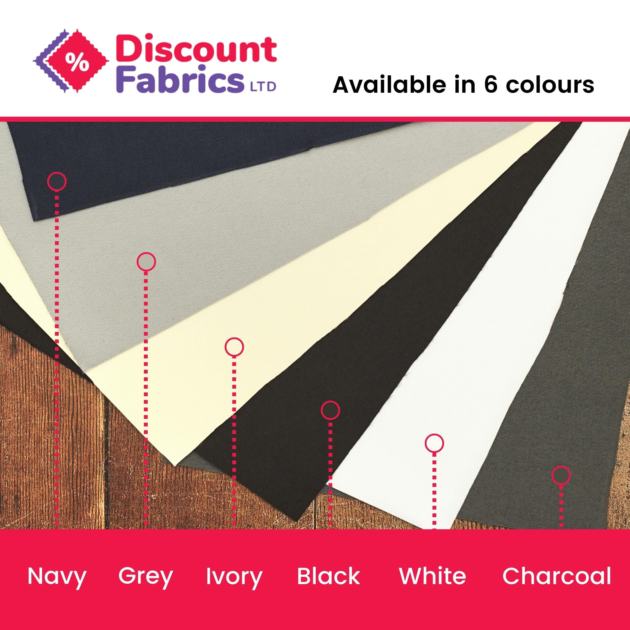 We sell six different colour choices: black, charcoal, grey, ivory, navy and white. All retain the same light-blocking properties yet give you the chance to pick a lining fabric that suits your tastes.