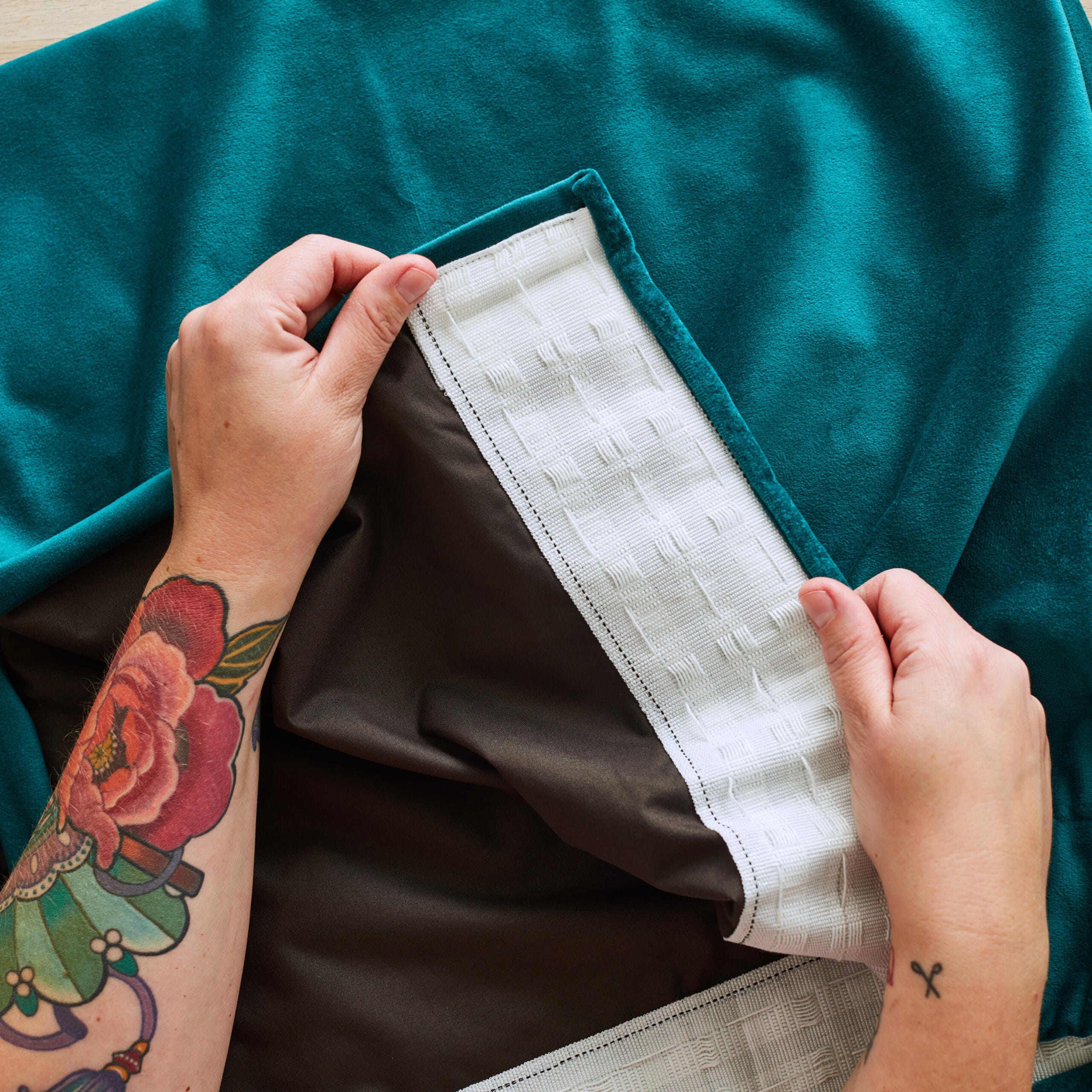 This fabric is traditionally used to line existing curtains. You sew the blackout curtain lining fabric onto your curtains and it gives them an extra layer of light protection. Your curtains can retain their existing design while having more practicality.