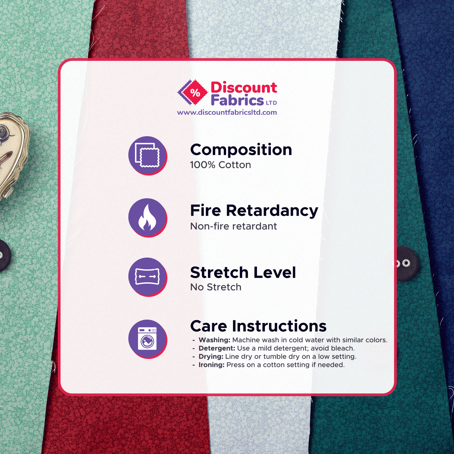 Printed on Liberty’s premium Lasenby Cotton base, this fabric is woven specifically for quilting. It is slightly heavier and more stable than Tana Lawn, offering a durable, crisp finish that holds a crease perfectly for patchwork.