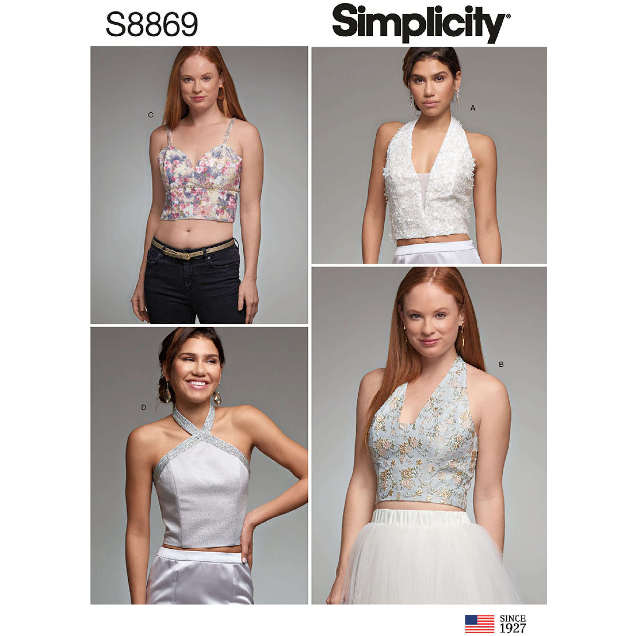 Close fitting tops, lightly boned and lined. Shoulder straps or halter neck styling and zip closure at back.